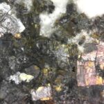 尾去沢鉱床からは、稼行時に綺麗な黄銅鉱結晶が大量に産出し標本市場でもよく見かけるが、最後に本鉱床の受けた珪化作用・角礫化作用そして二次富化変質作用を被った、面白い黄銅鉱鉱石を紹介しよう。