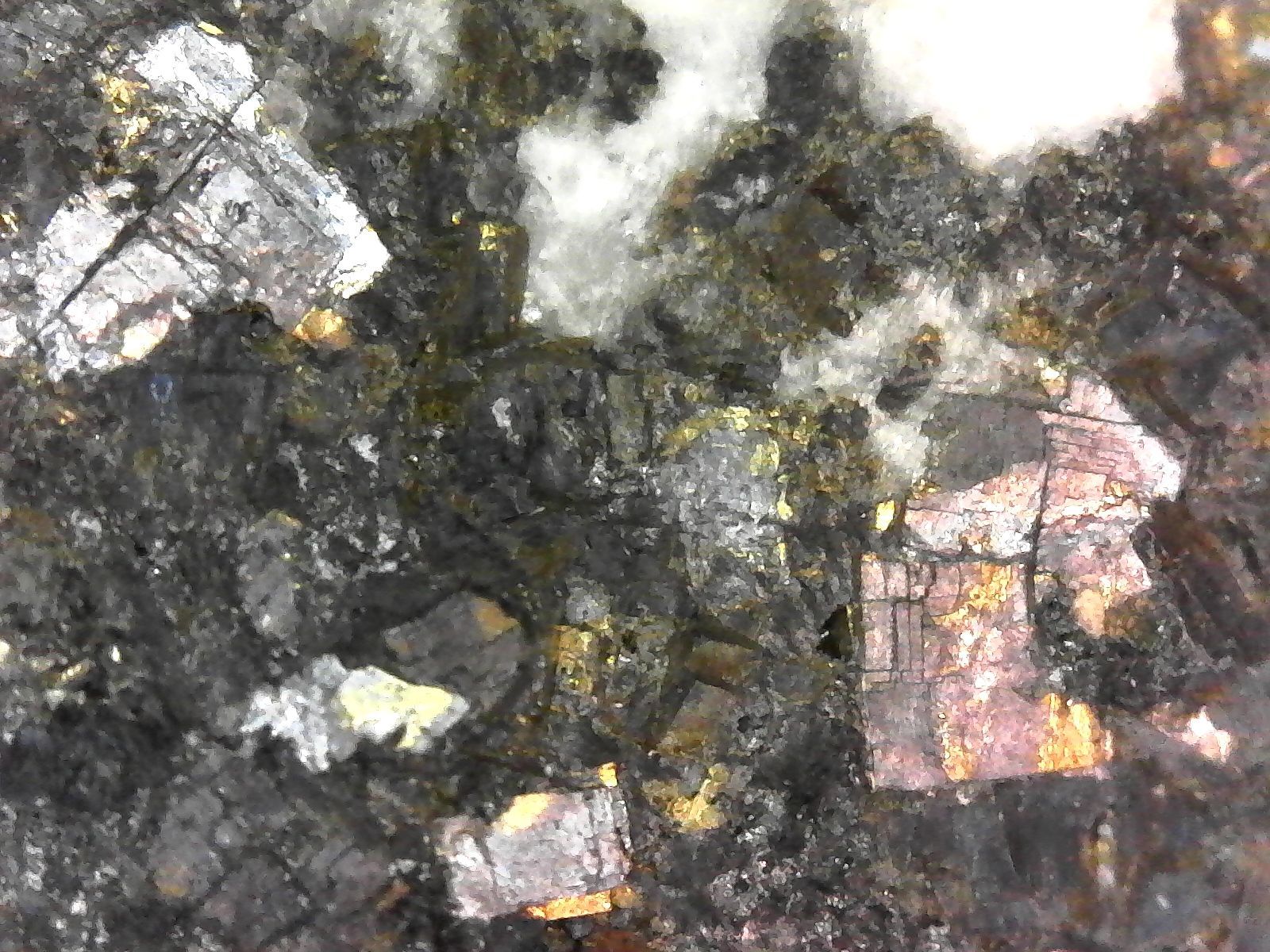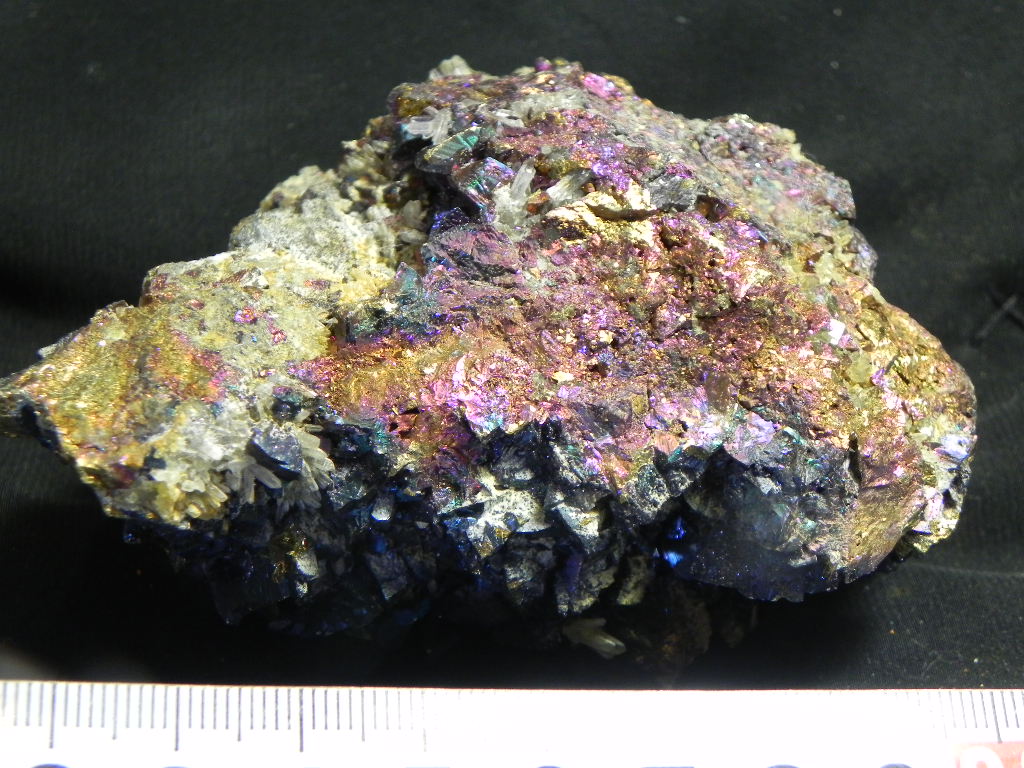 その中で特に鉱山で「ピーコックオア」と呼ばれた、青~赤銅色を呈する二次富化変質作用を被り斑銅鉱化した黄銅鉱鉱石の存在は、今回紹介した方鉛鉱の変質現象とも関連する興味深い標本であろう。