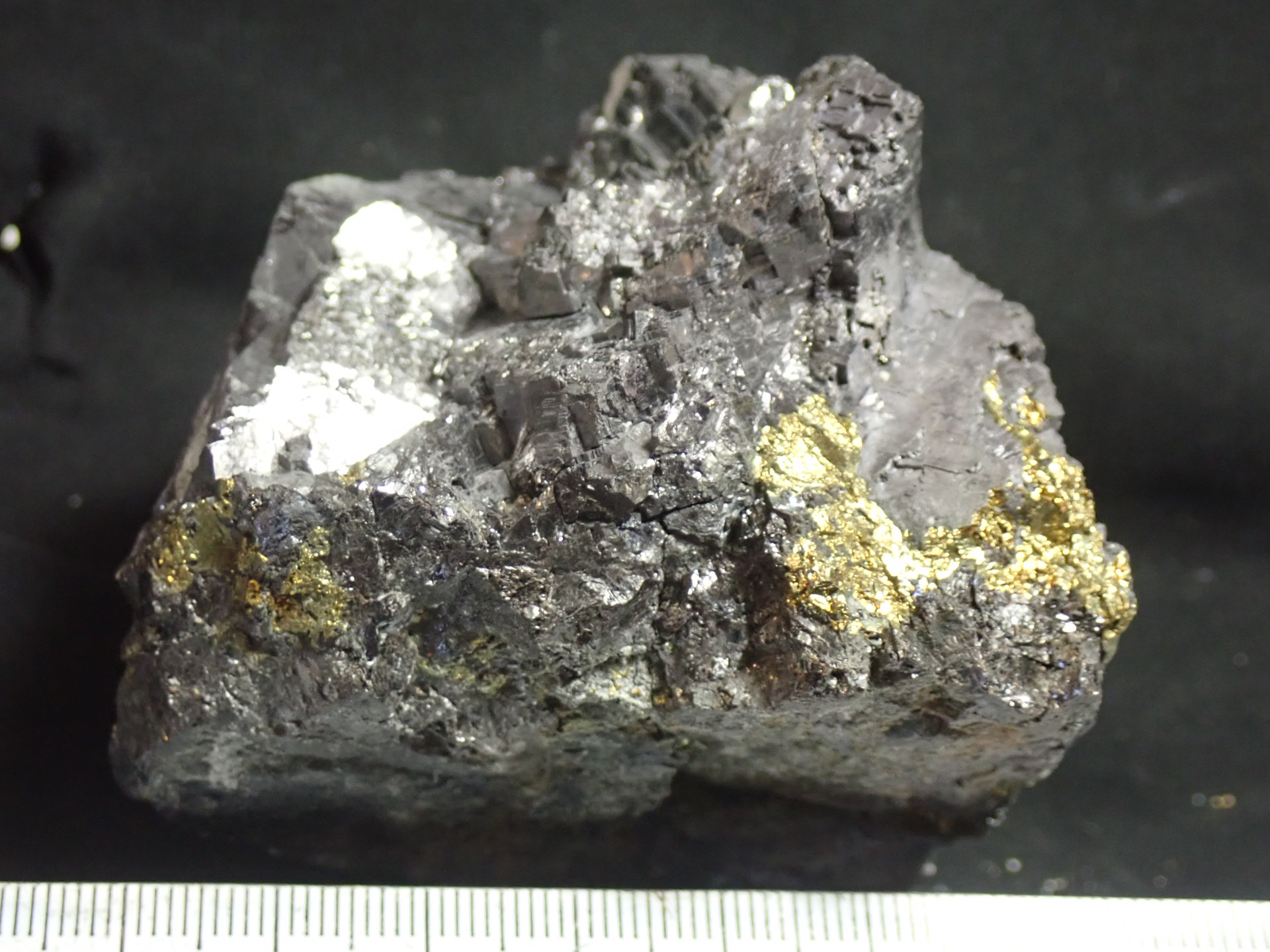 次は本鉱山産の方鉛鉱鉱石で、黄銅鉱や閃亜鉛鉱を含まぬ標本とそれらを含む標本の方鉛鉱外観を比較する。