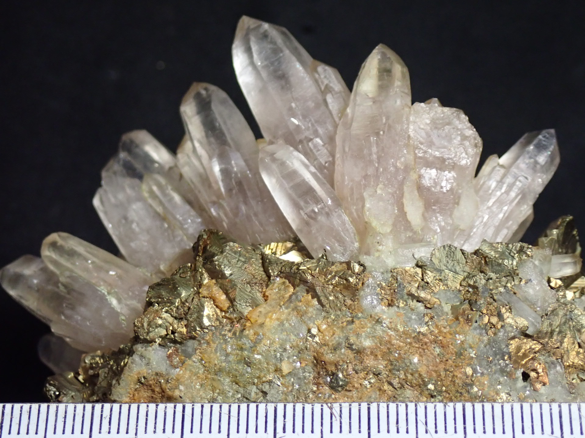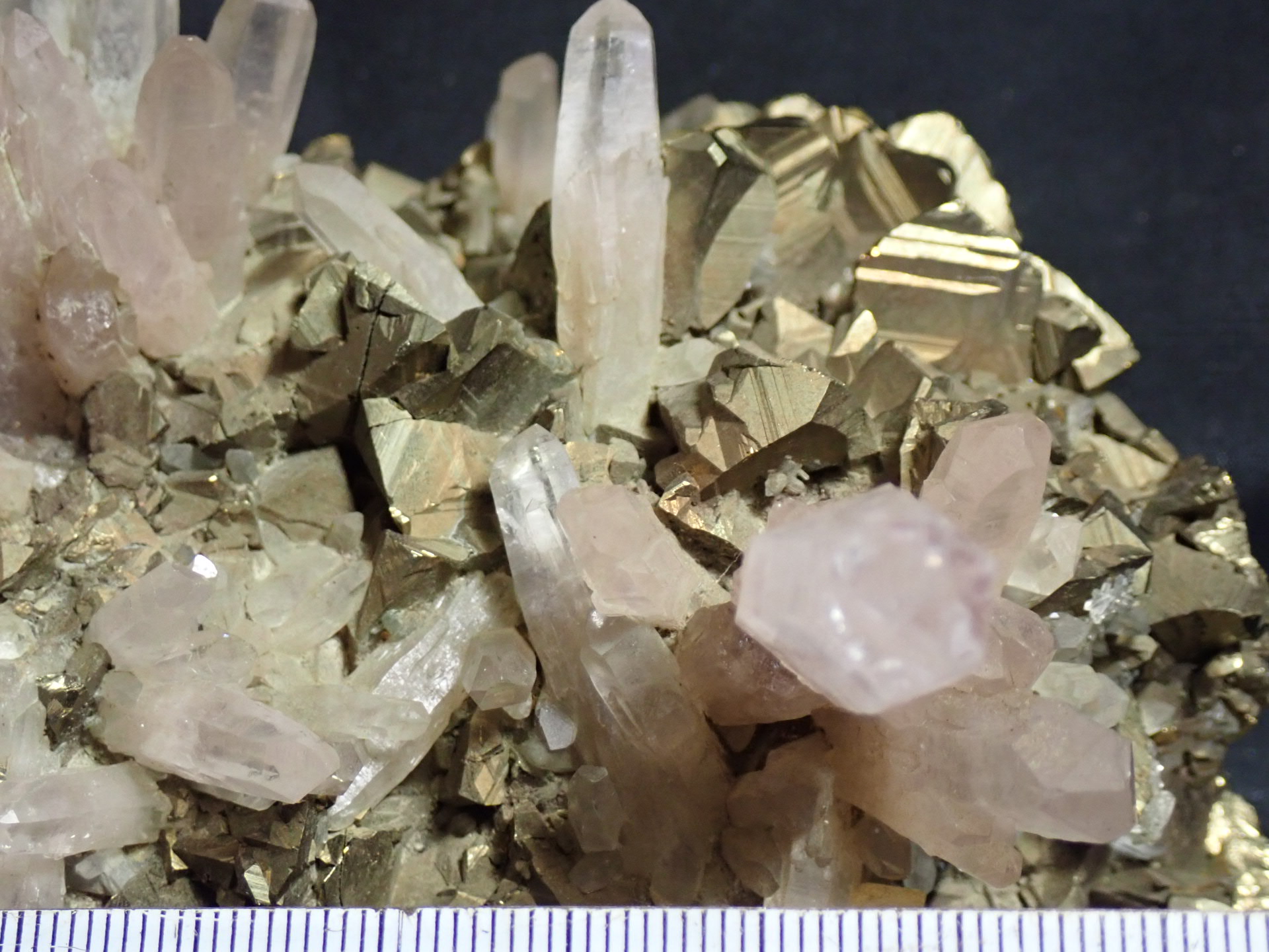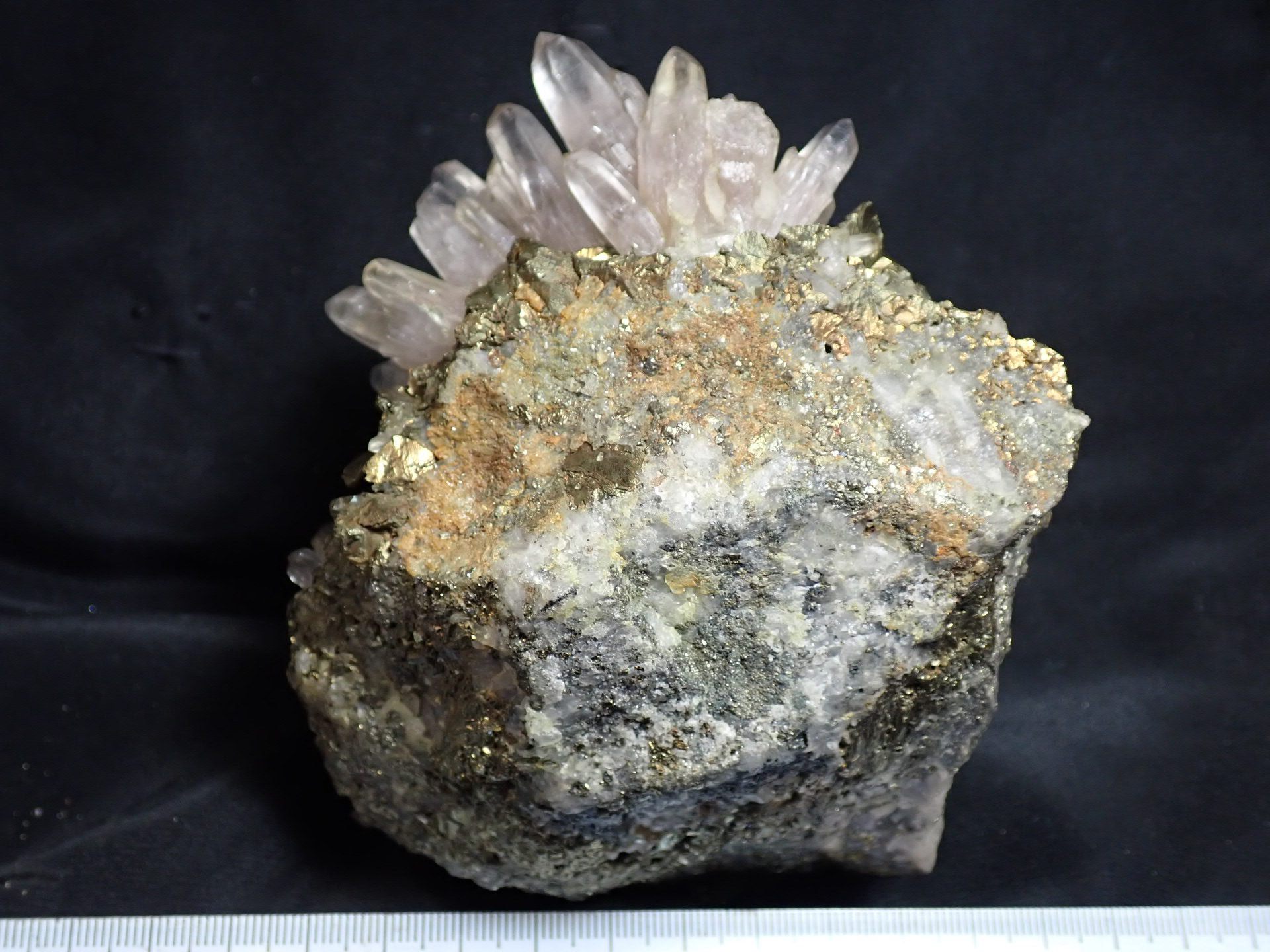 s40年代黒鉱ブームに乗って廃坑や休山中のヤマの再調査が北鹿各地で行われ、休山した荒川鉱業畑鉱山でも再調査が始まっていた(同じ荒川鉱業の亀山盛(きさもり)鉱山は廃坑になり久しく、三菱金属鉱業が直接調査を行っていた)。私は同級生のS君と共に訪れ、鉱専卒の先輩に色々お世話になった。先輩はs15年荒川鉱山休山時にお勤めだったとかで、稼行中に収集した同鉱山産の素晴らしい鉱物コレクションを拝見することが出来た。また同鉱山産鉱物標本を幾つか頂戴し、今回は嗽沢奥産と伝わる黄銅鉱脈の綺麗な紫水晶を紹介する。